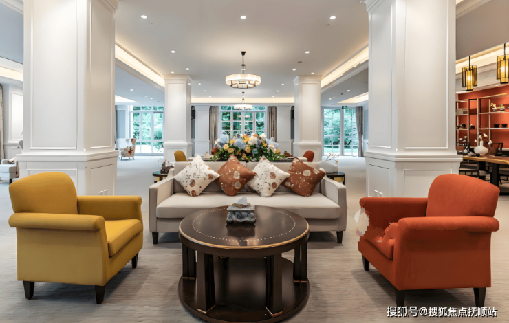 全园采用无障碍通行设计,走廊宽度达1.8米,地面防滑处理,电梯内设低位按钮及语音播报系统。房间内圆角家具、防跌倒报警装置、智能温控系统等细节,体现“安全优先”的适老化理念。公共区域配备2000㎡中医养生馆、屋顶花园及下沉式活动广场,形成“湖景+园景+廊景”三重景观体系。