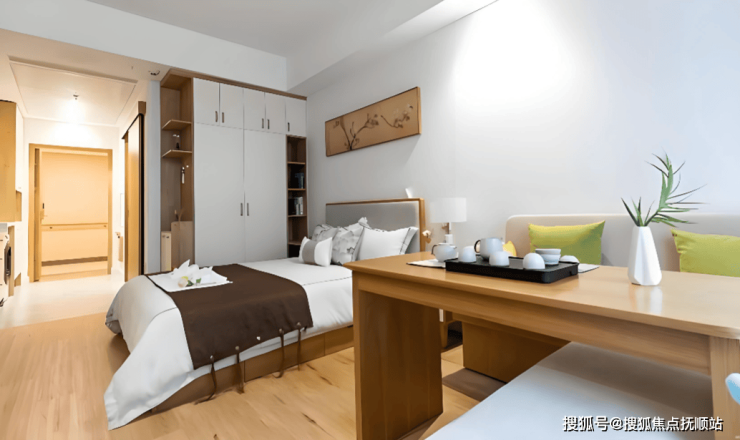 活力生活区:涵盖533套房间,以精致开间和一室一厅为主,85%以上房间朝南,配备独立厨房、卫浴及智能家居系统,支持家庭同住。单人间面积35-45㎡,双人间50-60㎡,均配备智能床垫、毫米波雷达跌倒预警系统及可语音控制的智能家居。
