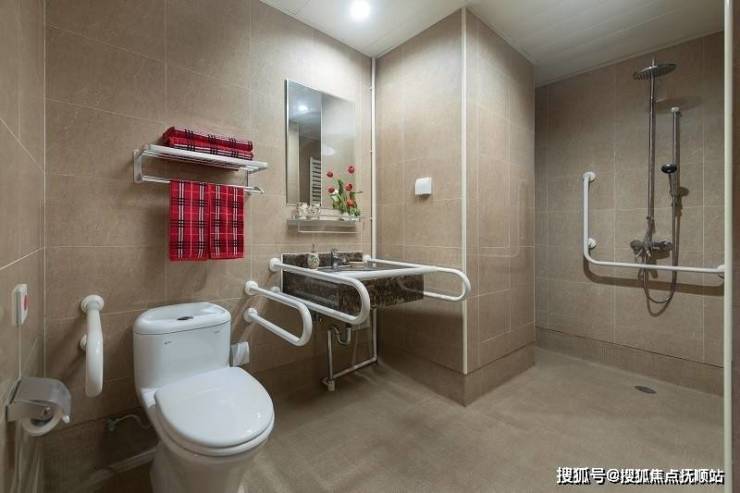 公寓总建筑面积8000平方米,规划222张智能化床位,采用“回廊式+组团化”空间布局,分设居住区、医疗康复区与公共活动区。房间内配备防滑地胶、圆角家具、感应夜灯及紧急呼叫系统,卫生间配置L型扶手与恒温花洒;公共区域设置防滑地面、双侧扶手及无障碍电梯,走廊宽度达1.8米,确保轮椅与助行器自由通行。
