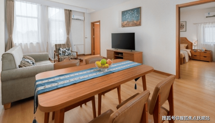 公寓占地3.2万平方米,绿化率达45%,园区内种植银杏、国槐等本土树种,形成天然氧吧。居住空间采用新中式风格,单人间面积25-30㎡,配备独立卫浴、紧急呼叫系统及防滑地板;双人间床间距≥1.1米,套间增设客厅与观景阳台。公共区域设有多功能活动厅、书画室、手工坊、健身房等10余类文化空间,并配备无障碍通道、康复步道及智能监控系统。餐饮区采用明厨亮灶设计,提供每日三餐两点,菜单由营养师根据季节调整,兼顾口味与健康需求。