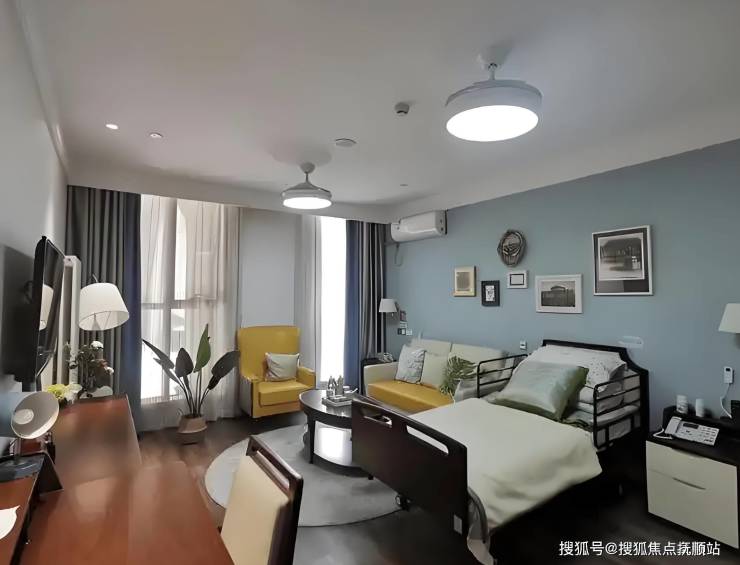 中心总建筑面积18378平方米,由三栋建筑构成,包含55间单人间、138间双人间及9间双拼间,总床位343张。独立庭院设计融合围合式静谧庭院与适老化户外设施,铺设防滑地板、安装安全扶手,并设置康复步道与景观花园;室内采用自然采光与新风系统,单人间配备毫米波雷达生命体征监测仪,双人间采用分床设计保障隐私。公共区域规划六大主题互动空间,包括书画室、棋牌室、音乐厅及感统治疗室,满足长者社交、娱乐与康复需求。