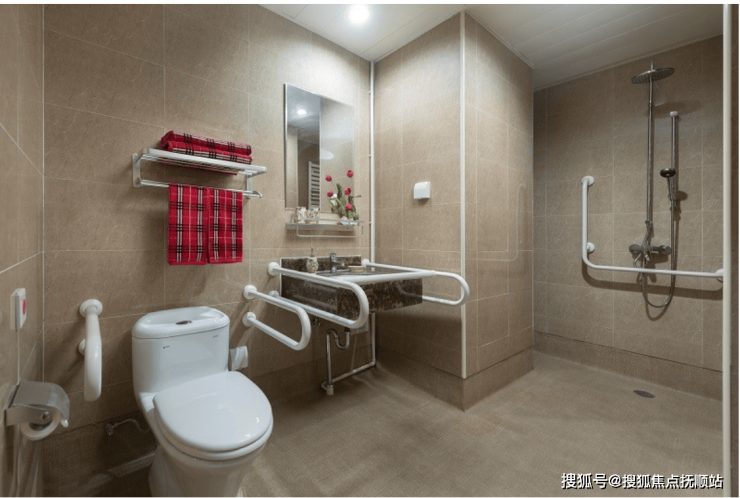 居住空间:全屋无门槛、走廊加宽配双层扶手;家具圆角处理、低位开关、感应夜灯;独立卫浴设助力扶手与紧急呼叫按钮,24 小时热水。