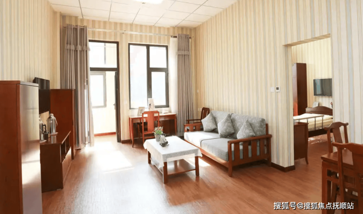 居住空间采用适老化设计,单人间配备独立卫浴、智能护理床、集中供氧设备及紧急呼叫系统,双人间共享会客区与适老化储物空间,四人间含基础适老化配置,豪华套间提供独立厨房与专属管家服务。