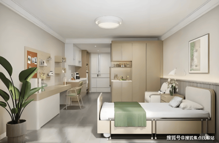 护理型公寓:单人间(35-45㎡)、双人间(50-60㎡),共150张床位,预留护理空间,适配半自理、失能长者。