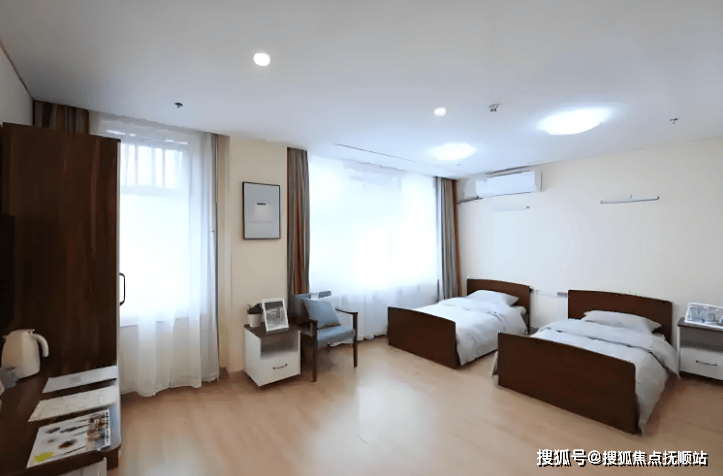 公寓建筑为现代简约风格,浅灰色外墙与大面积玻璃窗相搭配,内部空间布局通透,公共区域与居住单元通过连廊衔接。单人间面积28-35㎡,配备独立卫浴、智能护理床、紧急呼叫系统及中央空调;双人间人均面积20-25㎡,含共享客厅与阳台;家庭套房面积60-80㎡,增设独立书房与双卫浴。全院公共区域实现无障碍通行,走廊宽度达2.2米,全程铺设防滑地胶,电梯内设低位按钮及语音播报系统,家具采用圆角设计,确保安全。